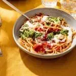 Spaghetti met geroosterde tomaten en pesto