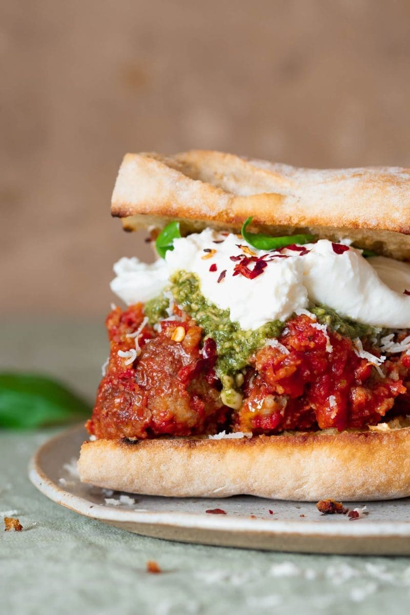 Deze Italiaanse meatball sub met pesto en burrata klinkt wat overdadig en dat was het qua smaak ook zeker! Dit is een heerlijke lunch voor een lui weekend. De gehaktballen kan je van tevoren maken, zo hou je dat weekend ook lekker lui.