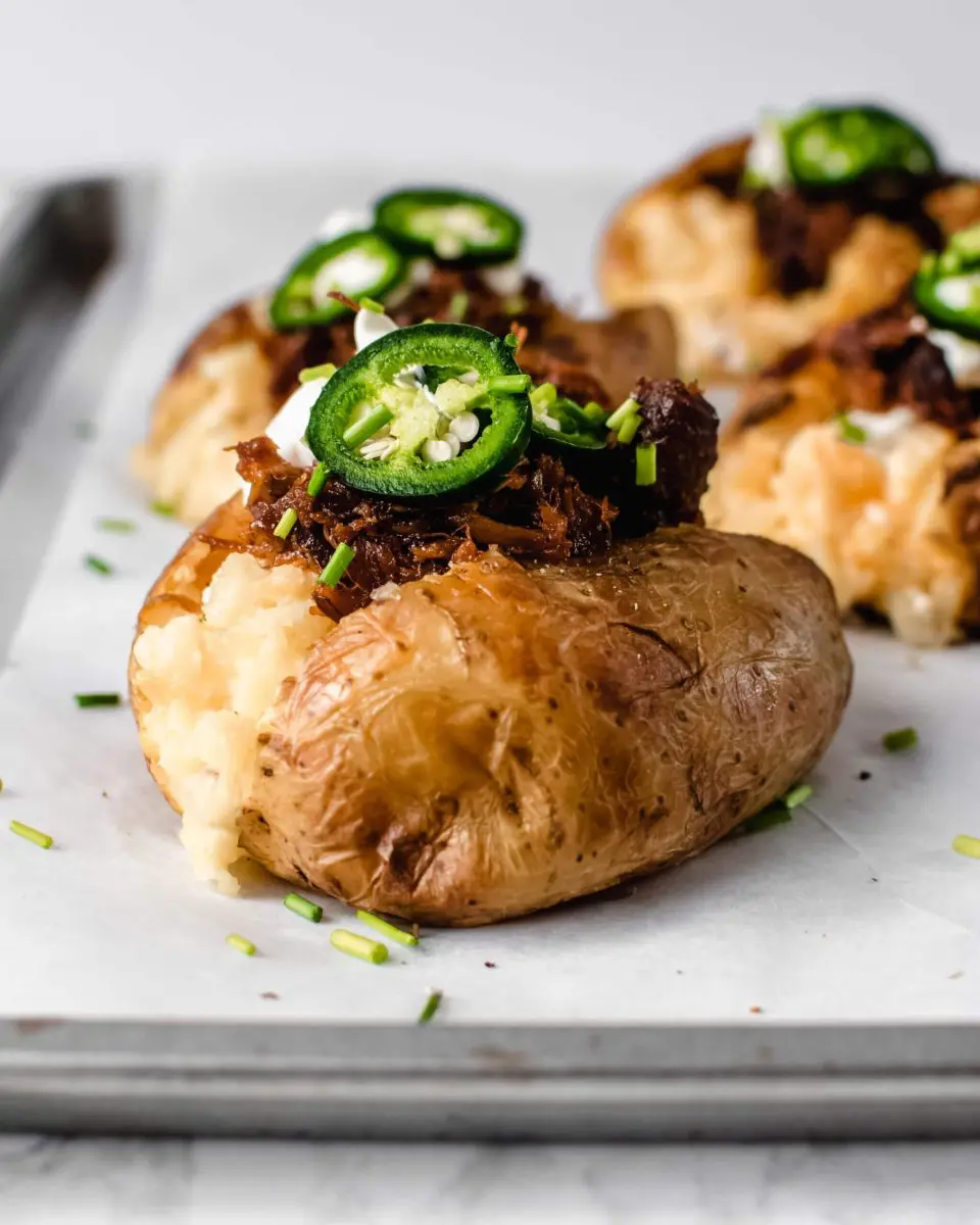Geen zin in vlees? Of eet je uberhaupt geen vlees? Maak deze gepofte aardappel dan met pulled jackfruit. Klik hier voor het recept!