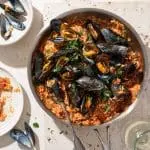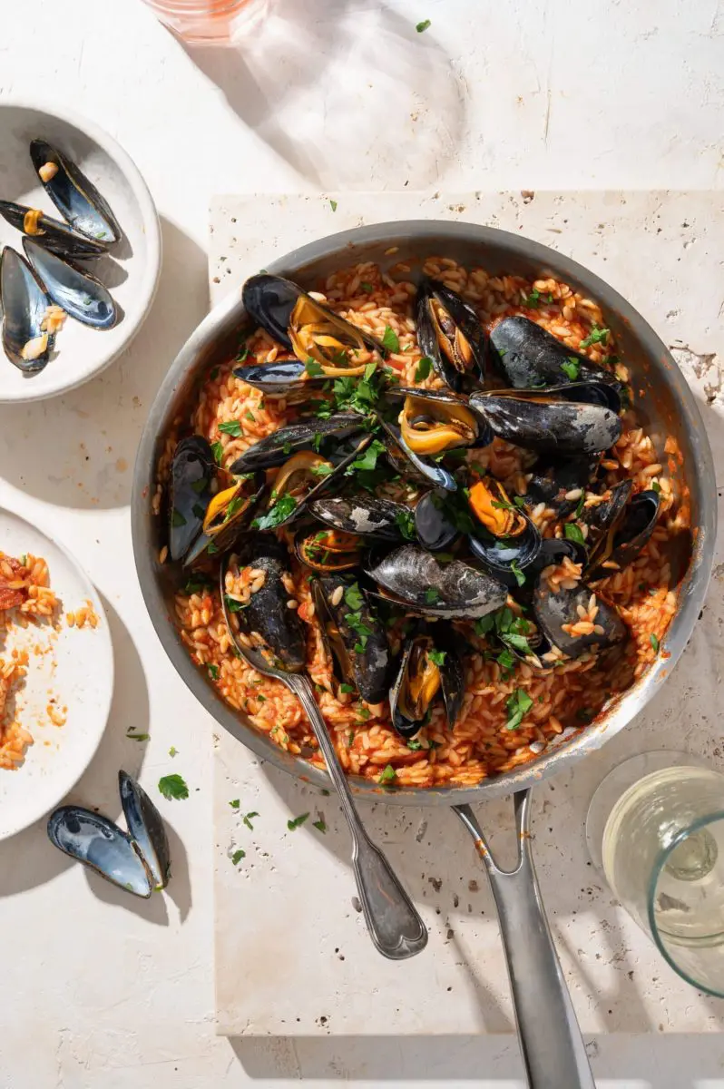 Mosselen met orzo en chorizo