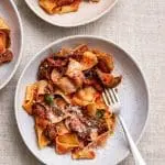 Je kunt uiteraard kiezen wat voor soort pasta je erbij serveert, ik had toevallig nog pappardelle liggen.