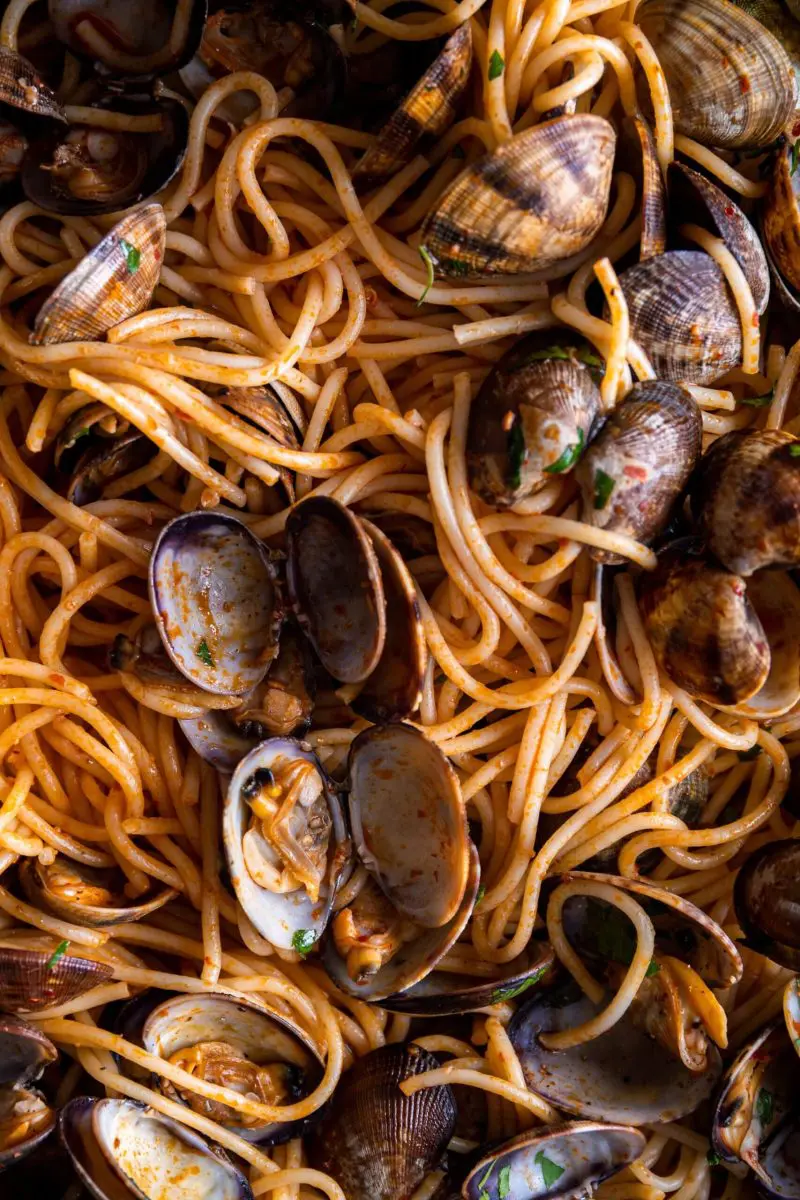 Spaghetti vongole met nduja