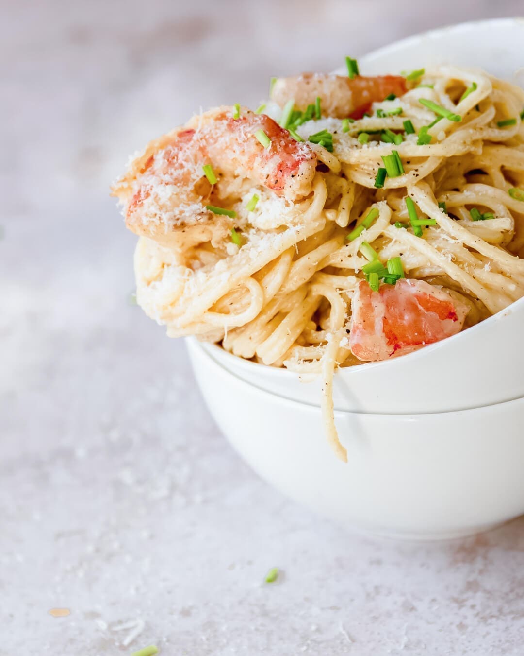 Het leuke is dat je hier mee kan variëren, je kan namelijk allerlei schaaldieren gebruiken. Denk aan krab of kreeft.