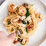 Spaghetti met spinazie, garnalen en zongedroogde tomaat