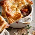 Daarom zijn deze individuele stoofvlees bakjes met bladerdeeg perfect voor de feestdagen, of gewoon een etentje natuurlijk. Ik heb ervoor gekozen om de vulling in ovenbestendige bakjes (je kunt ook ramekins gebruiken) te doen, maar je kunt de vulling ook in pastei bakjes doen.