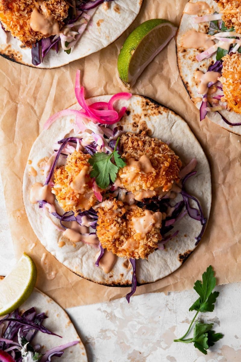 Een heerlijk nieuw gerechtje voor de komende lente en zomer, tacos met krokante garnalen! Deze is heerlijk en het is super makkelijk om te maken.