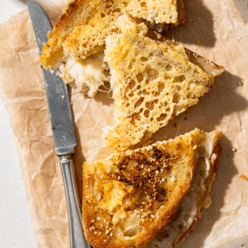 Door het brood in te smeren met za’atar kruidenboter krijgt de tosti extra smaak en een subtiele kruidigheid. De combinatie met gesmolten cheddar zorgt voor een volle, hartige bite en een perfecte balans tussen krokant en smeuïg. Het mooie is dat je hier geen ingewikkelde technieken voor nodig hebt — alleen een koekenpan, flink wat kaas en een paar minuten tijd.