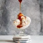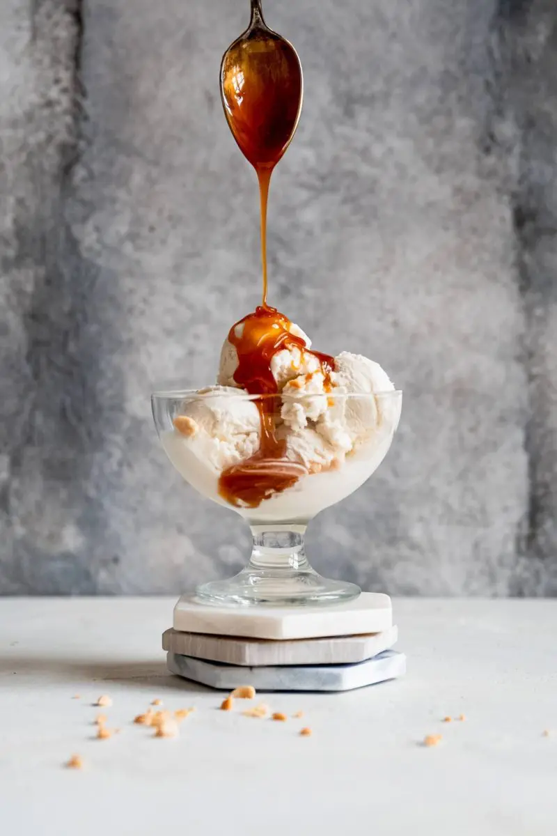 Vegan sundae met karamelsaus