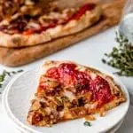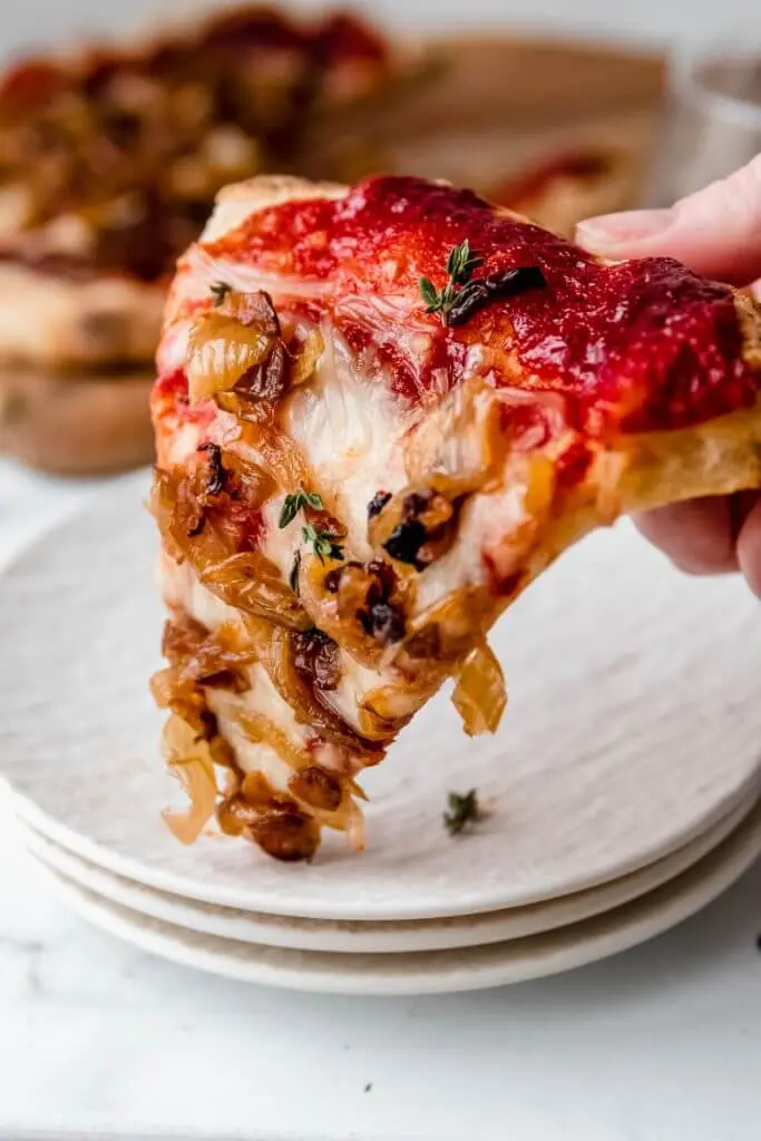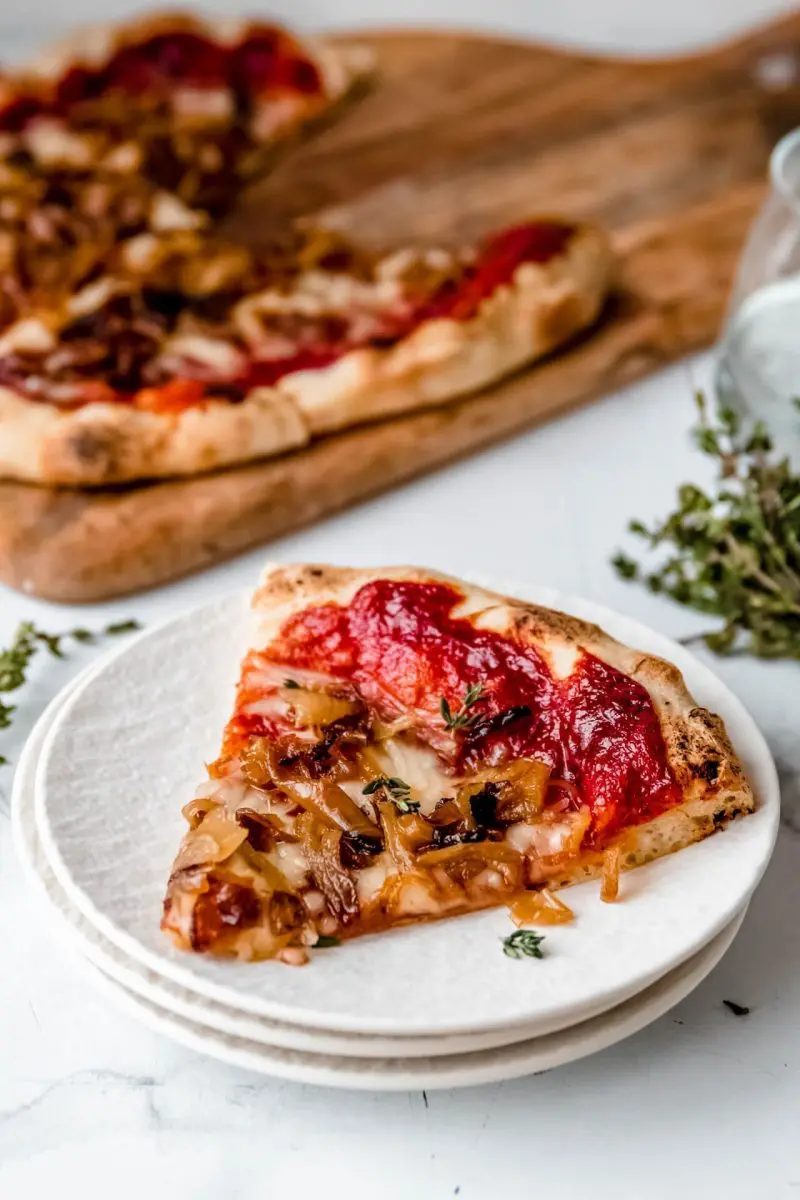 Vegan pizza met gekarameliseerde ui