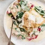 Oh mijjn god jongens, dit is zo’n lekker licht gerechtje! Vroeger aten wij heel vaak vis florentine uit een pakje, je weet wel die diepvries variant. Mijn moeder vond het namelijk heerlijk! Dan maakten we er extra spinazie bij en aardappelpuree.