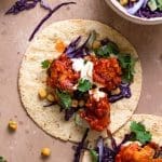 Wanneer de kip gaar is meng dan direct met buffalo saus naar smaak. Verdeel wat groenten over de taco, dan wat kip en als laatste wat creme fraiche. Serveer direct.