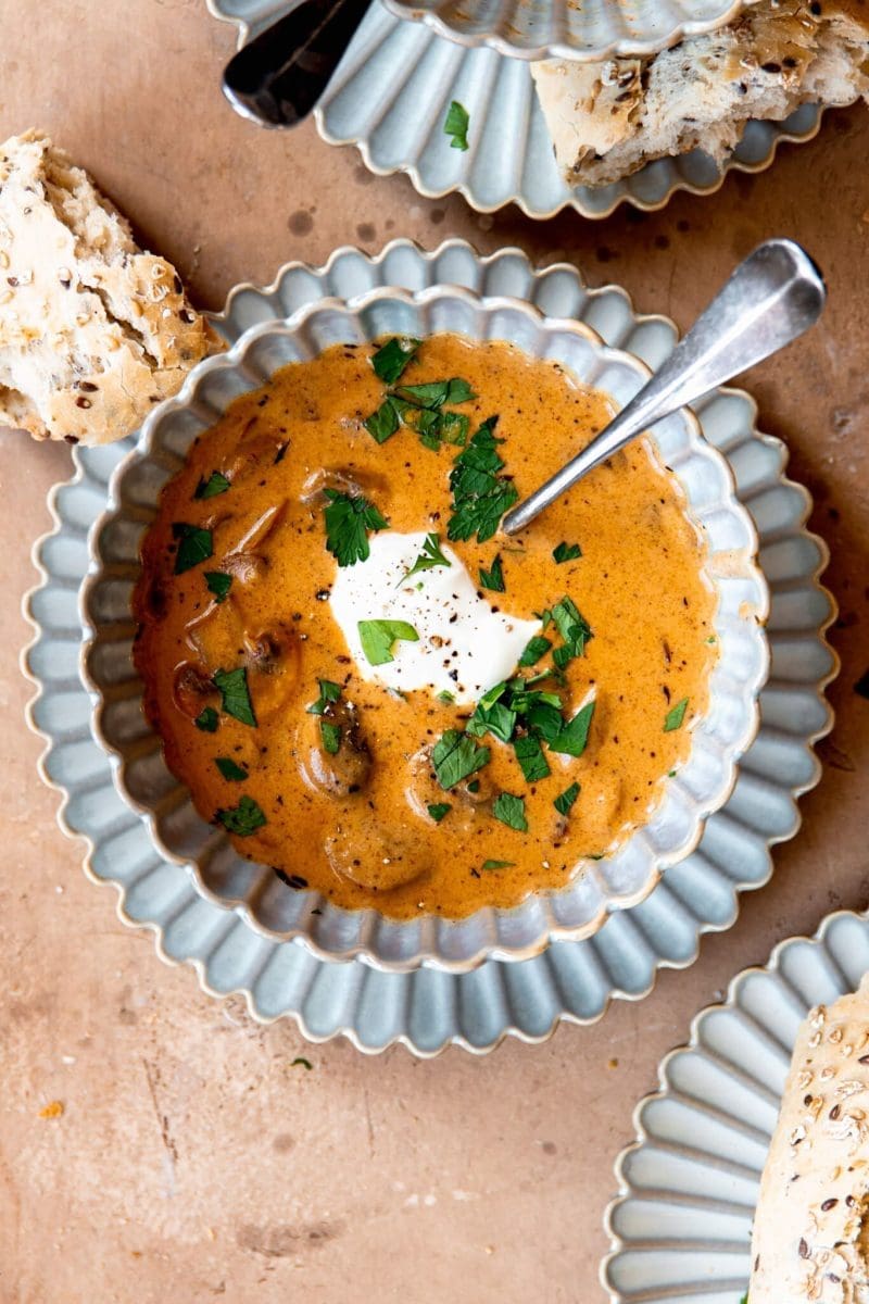 Een heerlijke, snelle, makkelijke en kruidige champignonsoep