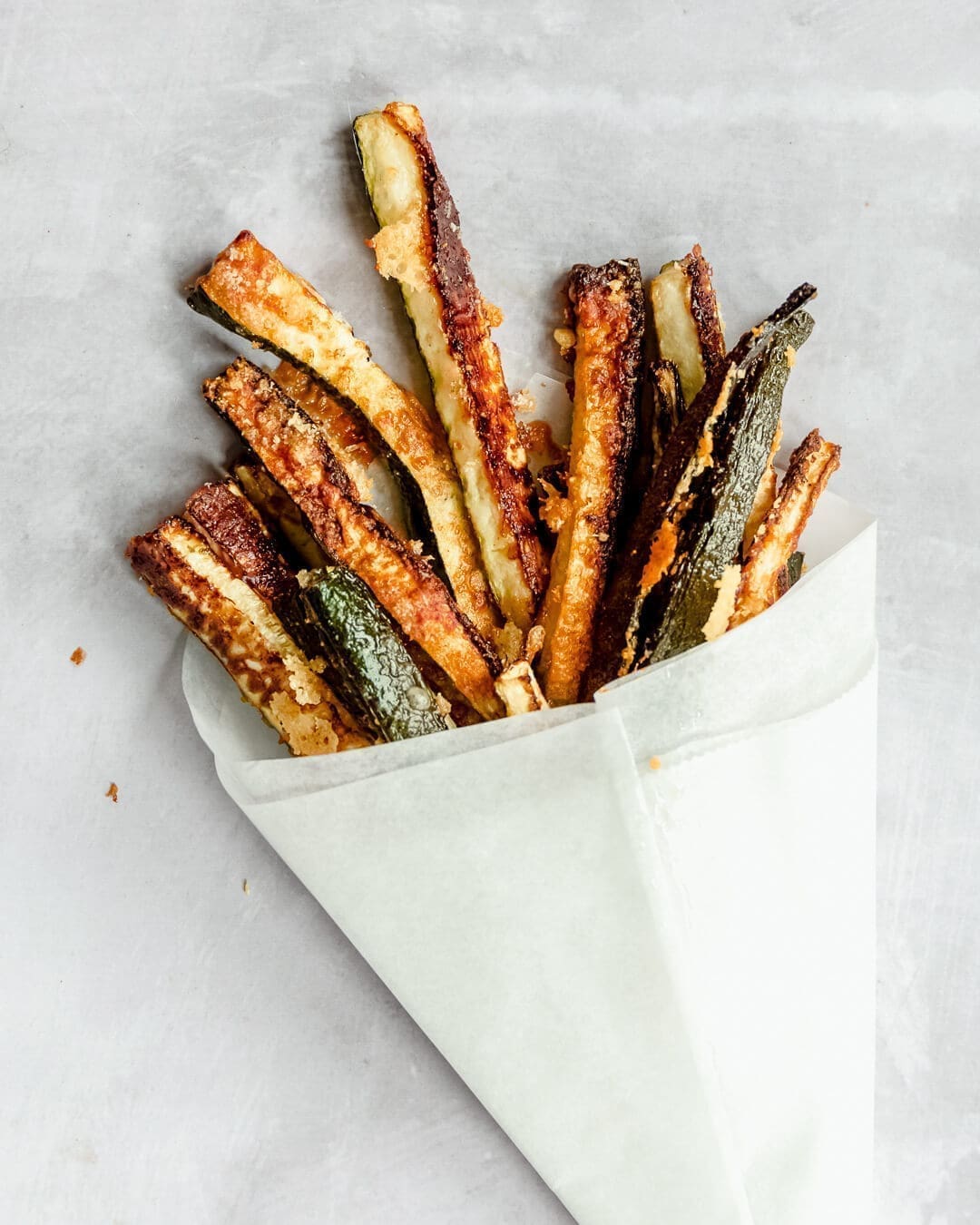 Haal elke friet eerst door het ei en dan door de parmezaanse kaas. Zorg dat alle kanten goed bedekt zijn.