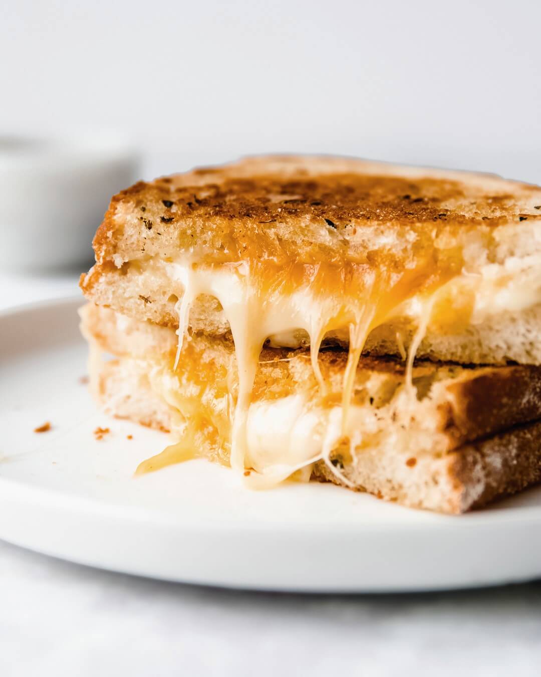 Greasy cheesy tosti, een tosti met 2 soorten kaas gebakken in olijfolie