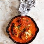 Serveer met extra basilicum en saus, groenten, eventueel spaghetti of brood.