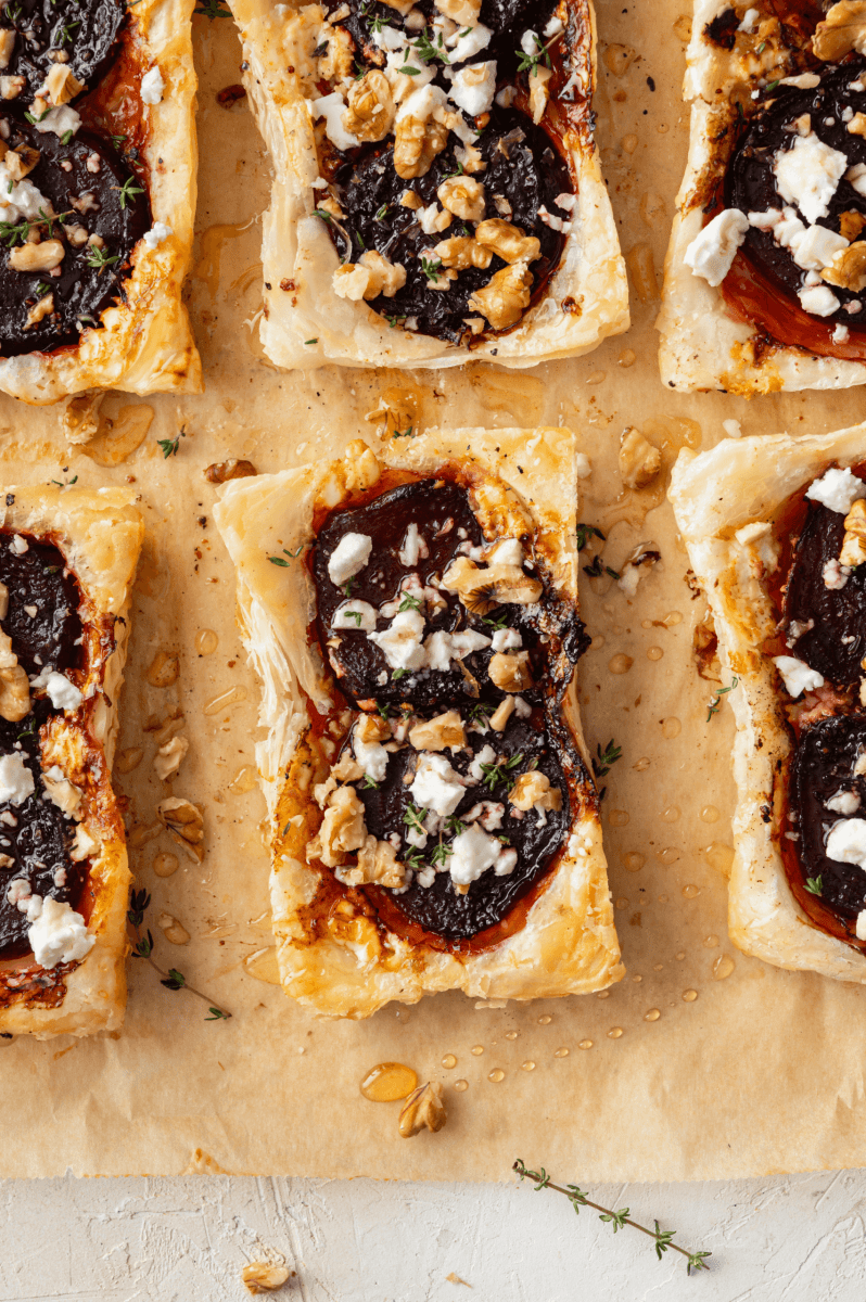 Kleine plaattaartjes met bieten en feta