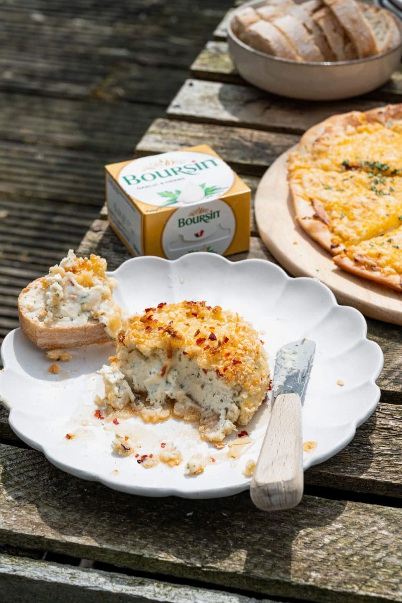 Krokante Boursin met hete honing en Boursin kaasbrood
