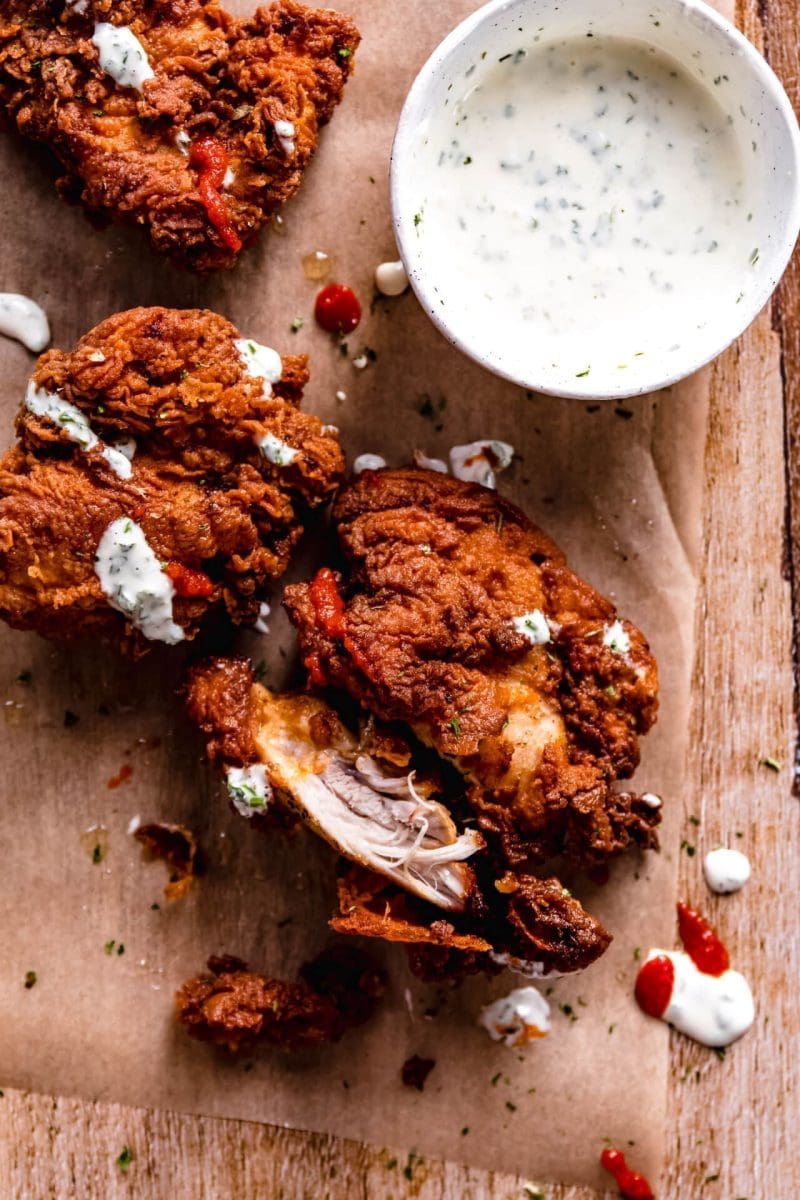 Dien op met extra sriracha en een ranch dressing.