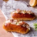 Snij de broodjes aan de bovenkant open, verdeel de kreeft over de 2 broodjes en garneer met wat verse bieslook. Dien direct op.