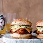 Smeer als eerste wat saus op de onderkant van het broodje, leg de kip met kaas hierop, doe wat extra sriracha over de kip (optioneel, als je niet van pittig houdt kun je dit weglaten), dan de sla en als laatste de augurk. Dien direct op.