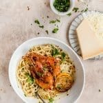 Die op op twee borden en serveer met parmezaanse kaas.