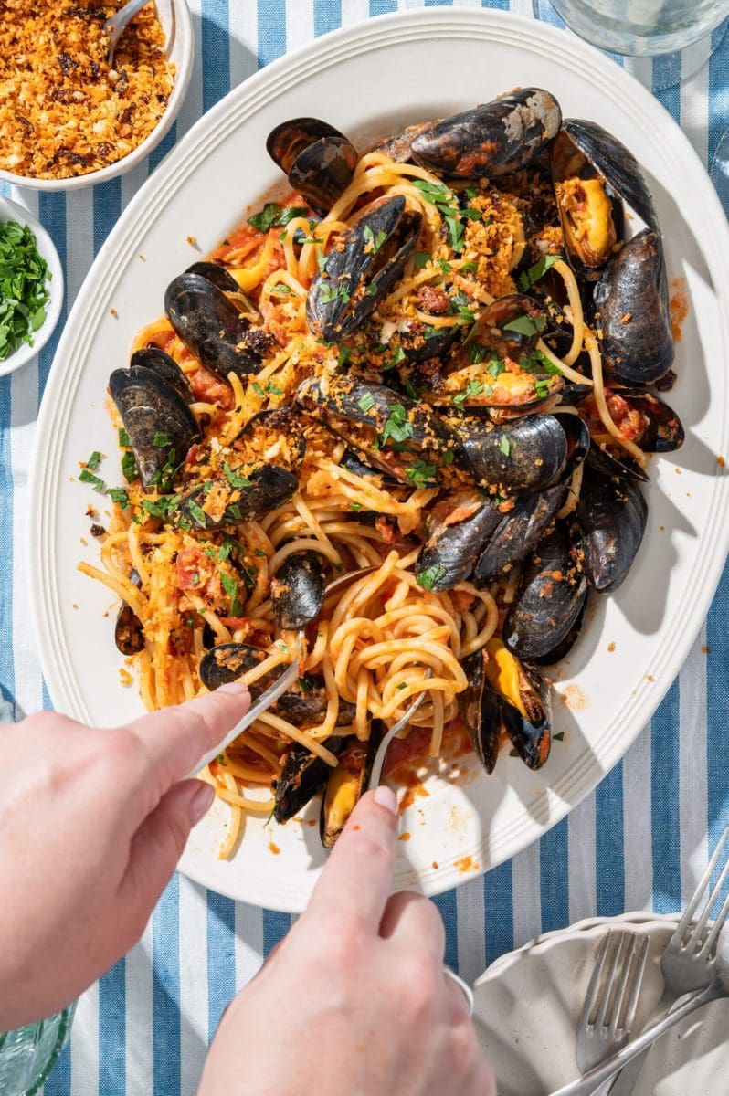 Spaghetti mosselen Arrabiata