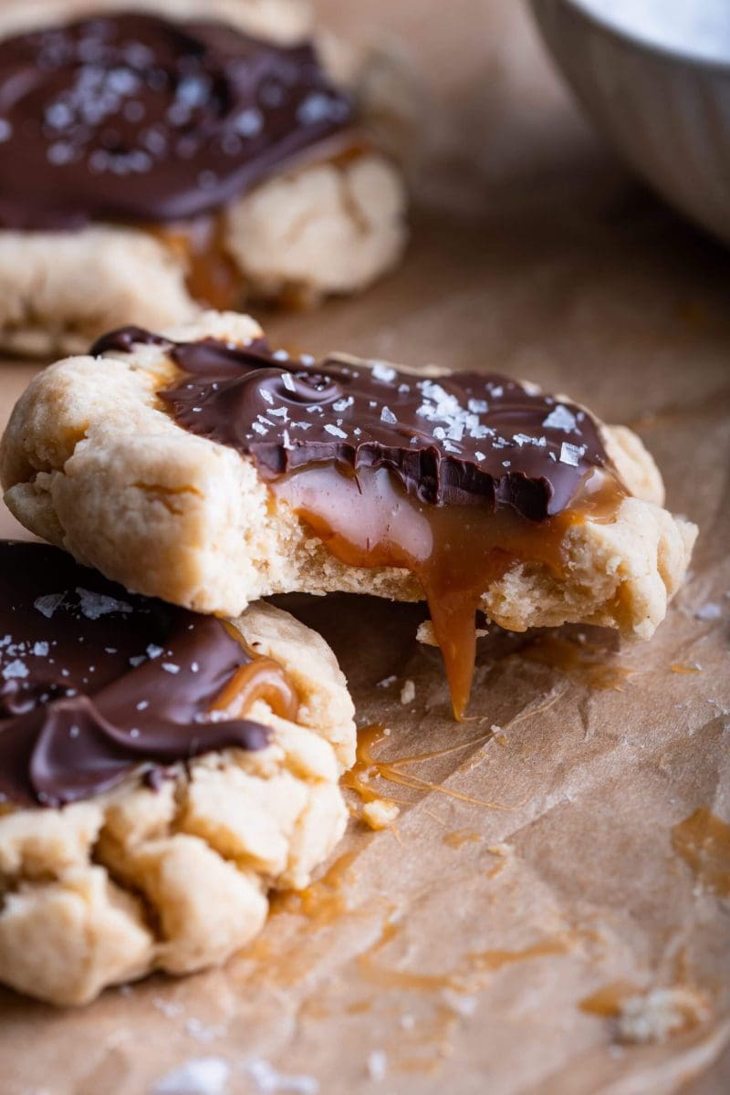 Vul het lagere deel van de koekjes met de karamel.