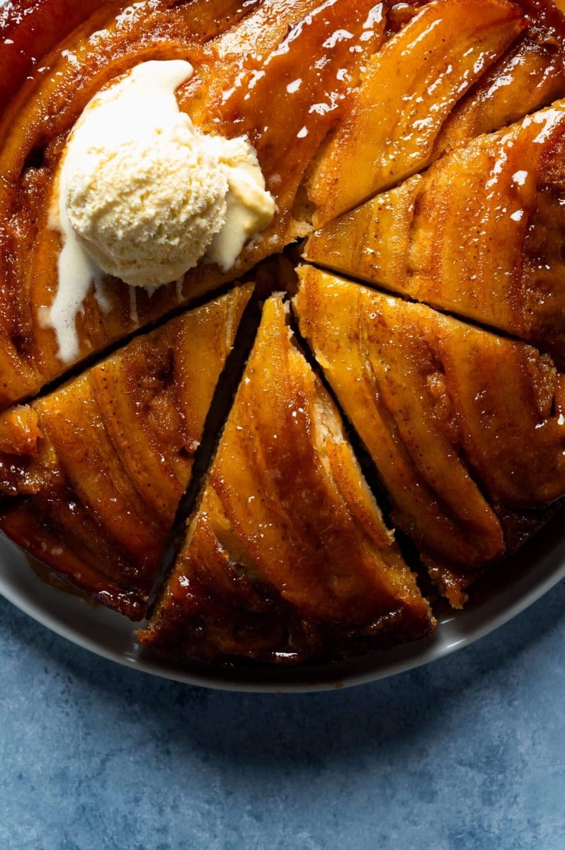 Wacht niet langer dan 5 minuten met je cake omkeren. De karamel kan anders teveel uitharden waardoor je problemen krijgt met uit het bakblik krijgen.