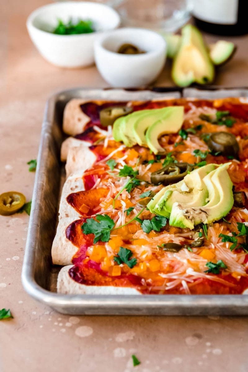 Bak dit 15 minuten af in de oven totdat de tortilla’s krokant aan de zijkant zijn en de kaas is gesmolten.