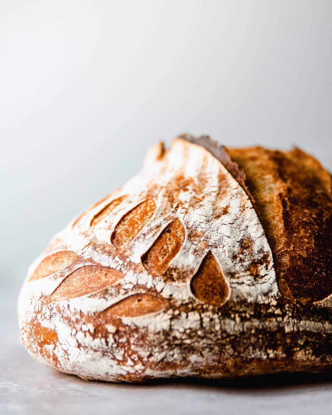 Bestuif wanneer je deeg goed is je aanrecht heel licht met bloem. Keer je deeg om op het aanrecht en vorm je deeg in een bol of een batard (afhankelijk van de vorm van je rijsmand/pan, dit is de preshape Laat het deeg 15 minuten liggen en herhaal, dus vorm wederom in een boule of batard (final shape).